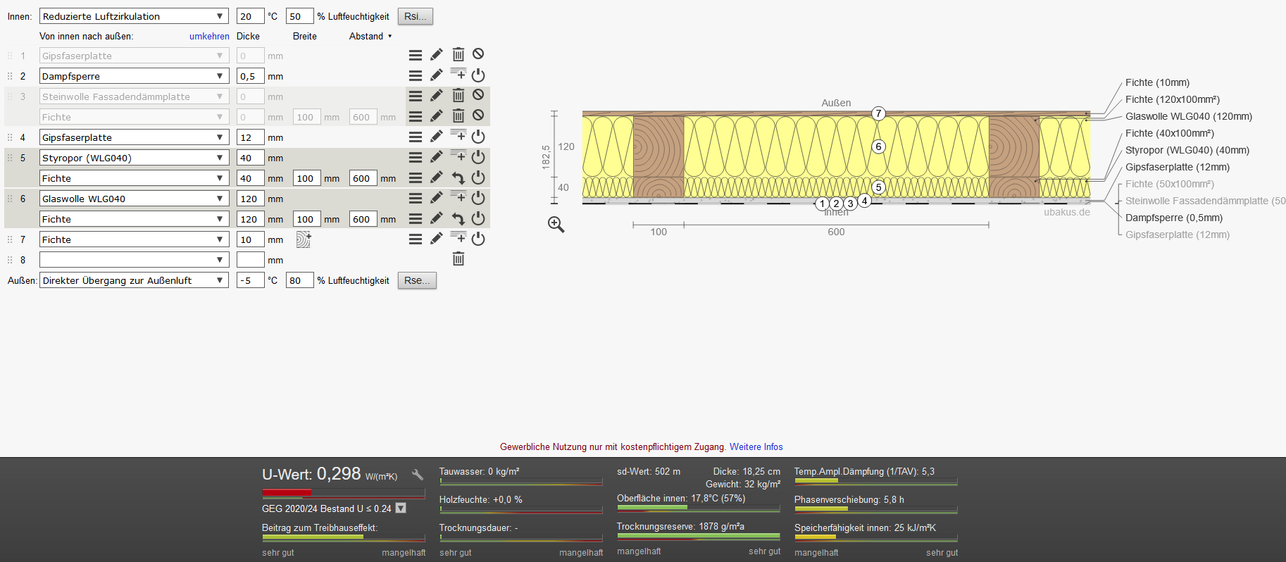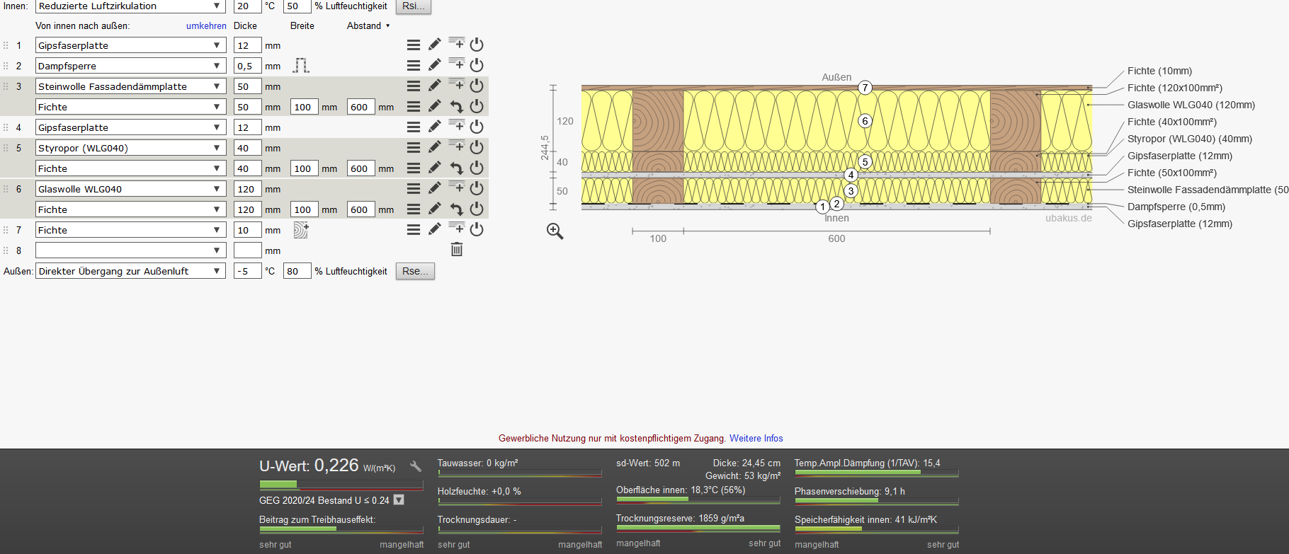 - Der Wärmeverlust durch die erste Wand beträgt 178,2 W.